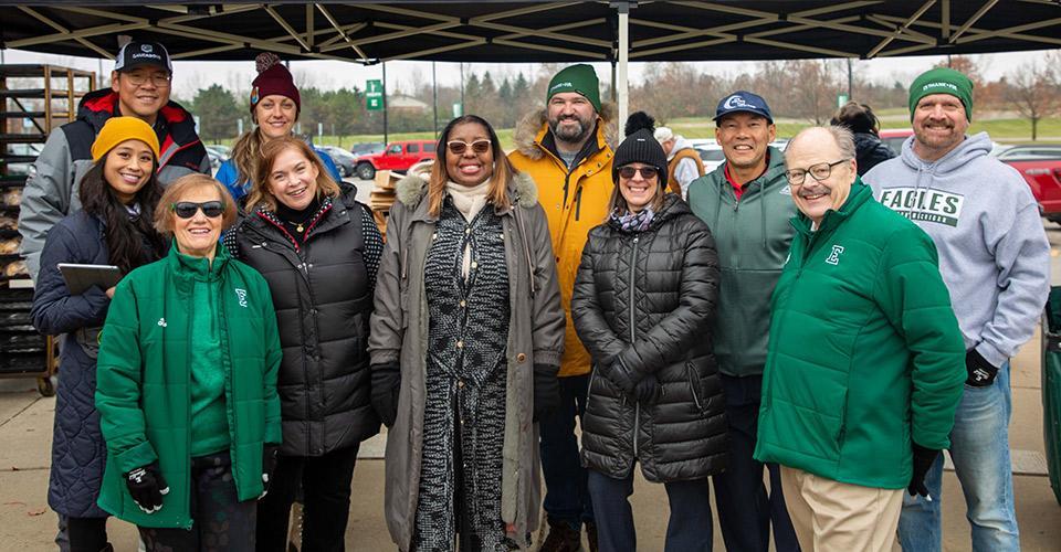 Eastern Michigan University President Dr. James M. Smith and Dr. Connie Ruhl-Smith joined Ann Arbor Area Community Foundation leadership and staff during the Thankful to Go event, including President & CEO Rev. Dr. Shannon Polk, members of the Philanthropic Advisory team, and the Community Investment team.